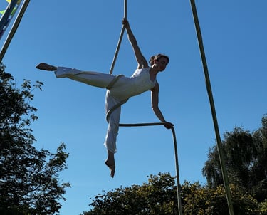 My main specialism is rope, but I also perform silks, hoop and static cloudswing. Be in touch if you would like me to perform for your event.